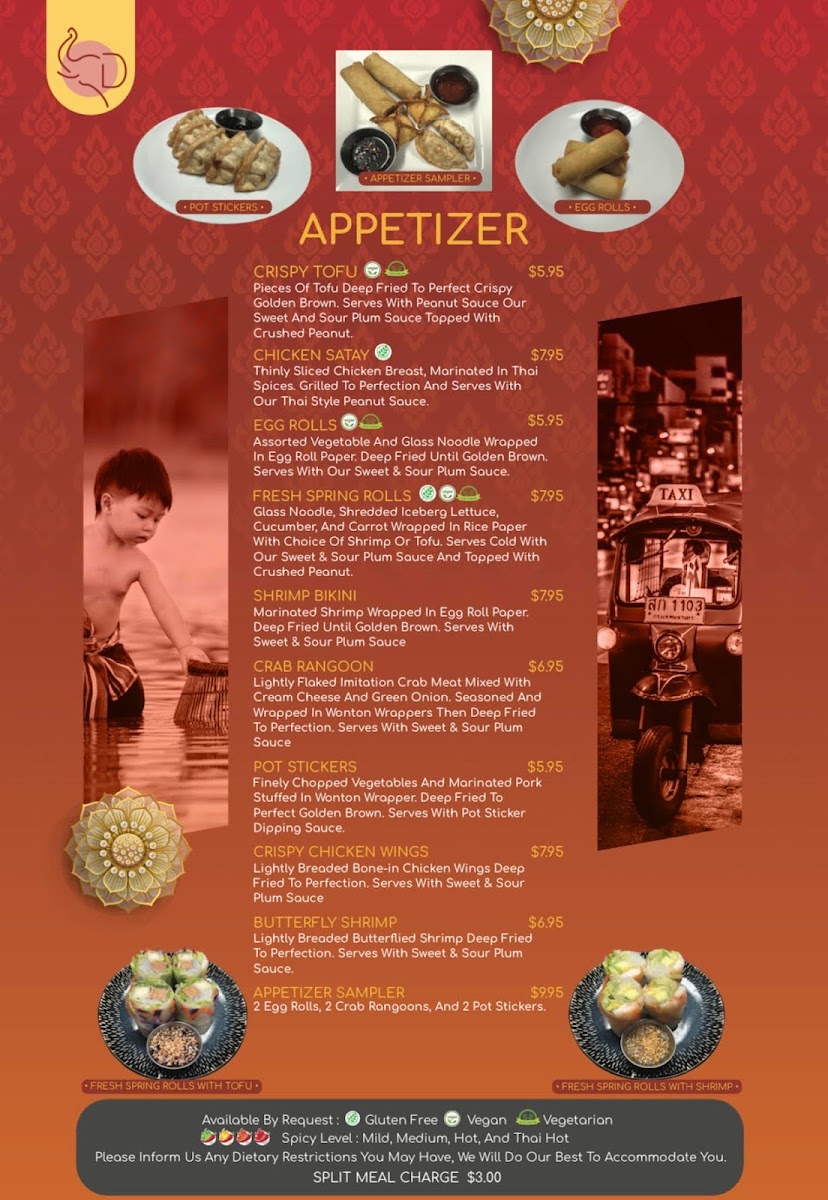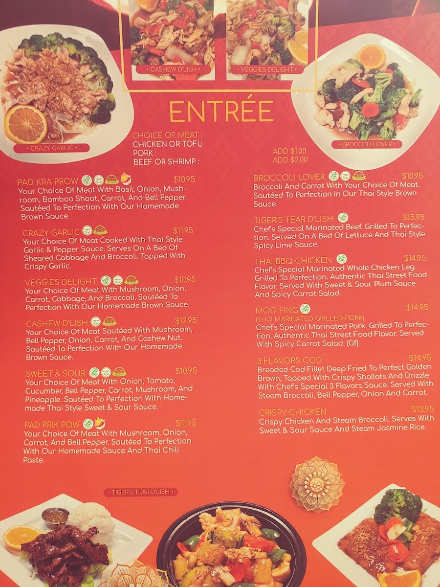 As a final takeaway, the menu at Thai D'lish at 234 N 12th St, Quincy, IL, delivers a well-rounded and thoughtfully curated Thai dining experience that balances variety, comfort, and authenticity. From the start, appetizers like Appetizer Sampler, Butterfly Shrimp, Chicken Satay, Crab Rangoon, and Crispy Chicken Wings set an inviting tone, offering a mix of crunchy, savory, and familiar Thai-American favorites. The dinner selections truly anchor the menu, especially the curry lineup-Crispy Curry, Green Curry, Mussamun Curry, Red Curry, and Pineapple Curry-which showcases a spectrum of flavors from rich and mild to fragrant and spicy. Entrées such as 3 Flavors Cod, Broccoli Lover, Cashew D’Lish, Crazy Garlic, and Crispy Chicken provide satisfying options for both meat lovers and vegetable-focused diners.